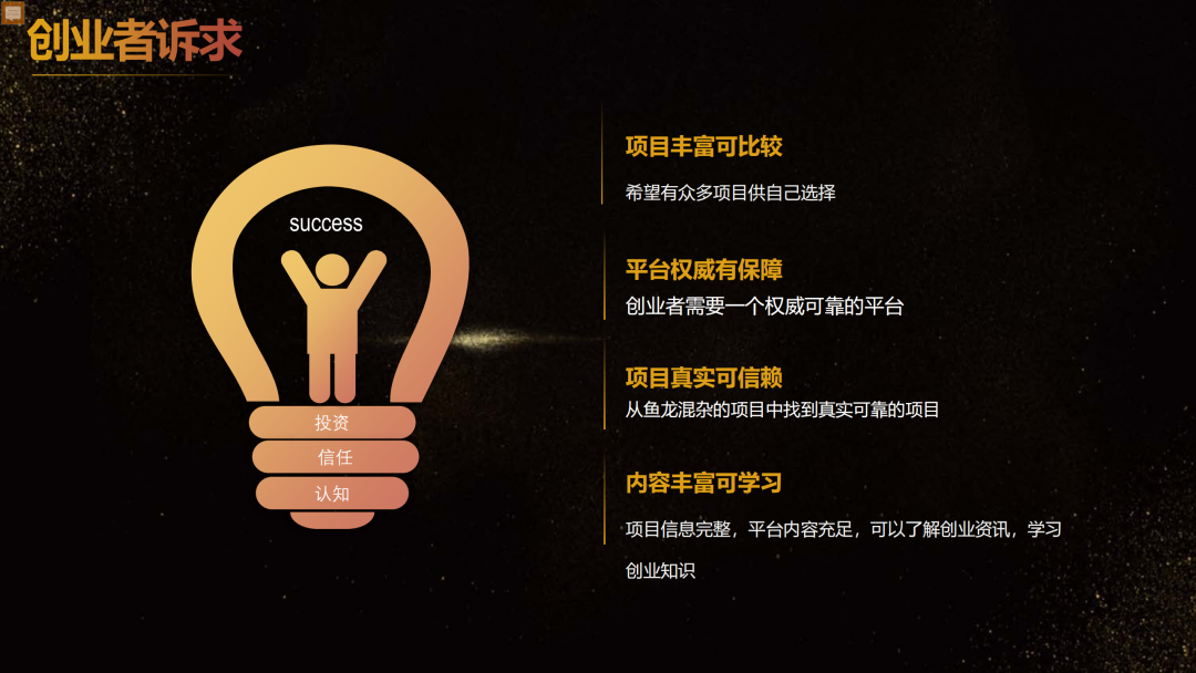 加盟星平臺依托于百度構建的一套權威真實認證體系,匯集加盟商豐富的項目信息,將創業者的海量檢索需求與加盟項目信息精準匹配,幫助創業者更高效地找到理想中的投資項目,降低品牌方獲取線索的成本,提升加盟成單轉化率。